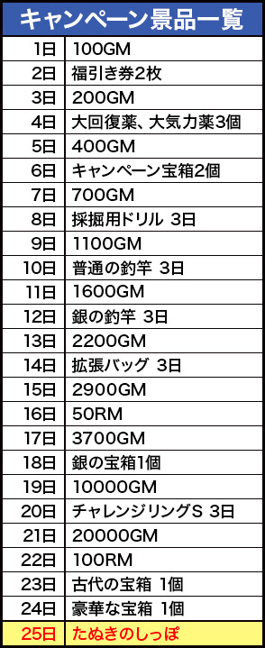 - ※ログイン日数に応じて福引き券をプレゼントいたします。