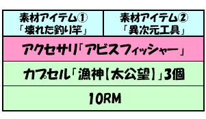 この釣竿を利用することで、アクセサリ「アビスフィッシャー」を生成するために必要な合成素材が入手可能だ!